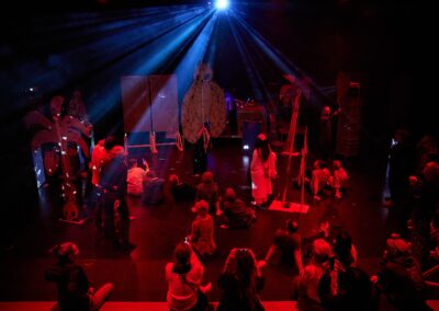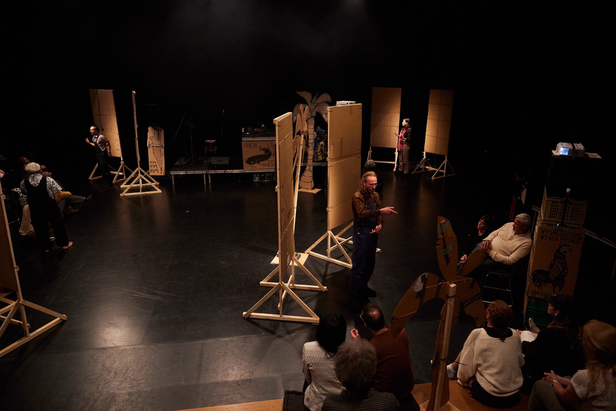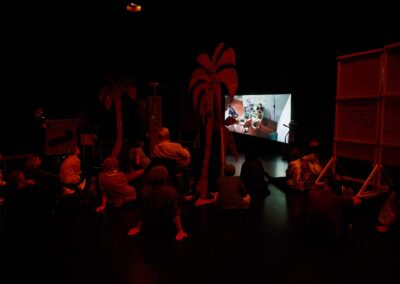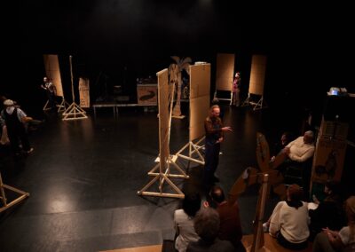Das Ergebnis der künstlerischen Forschung wird in einer multidisziplinären Performance mit Videoinstallationen, Live-Malerei und Musik präsentiert. Das Team erschafft einen Raum, in dem sich das Publikum zwischen diesen Erzählungen bewegen und selbst Teil des Dialogs werden kann.